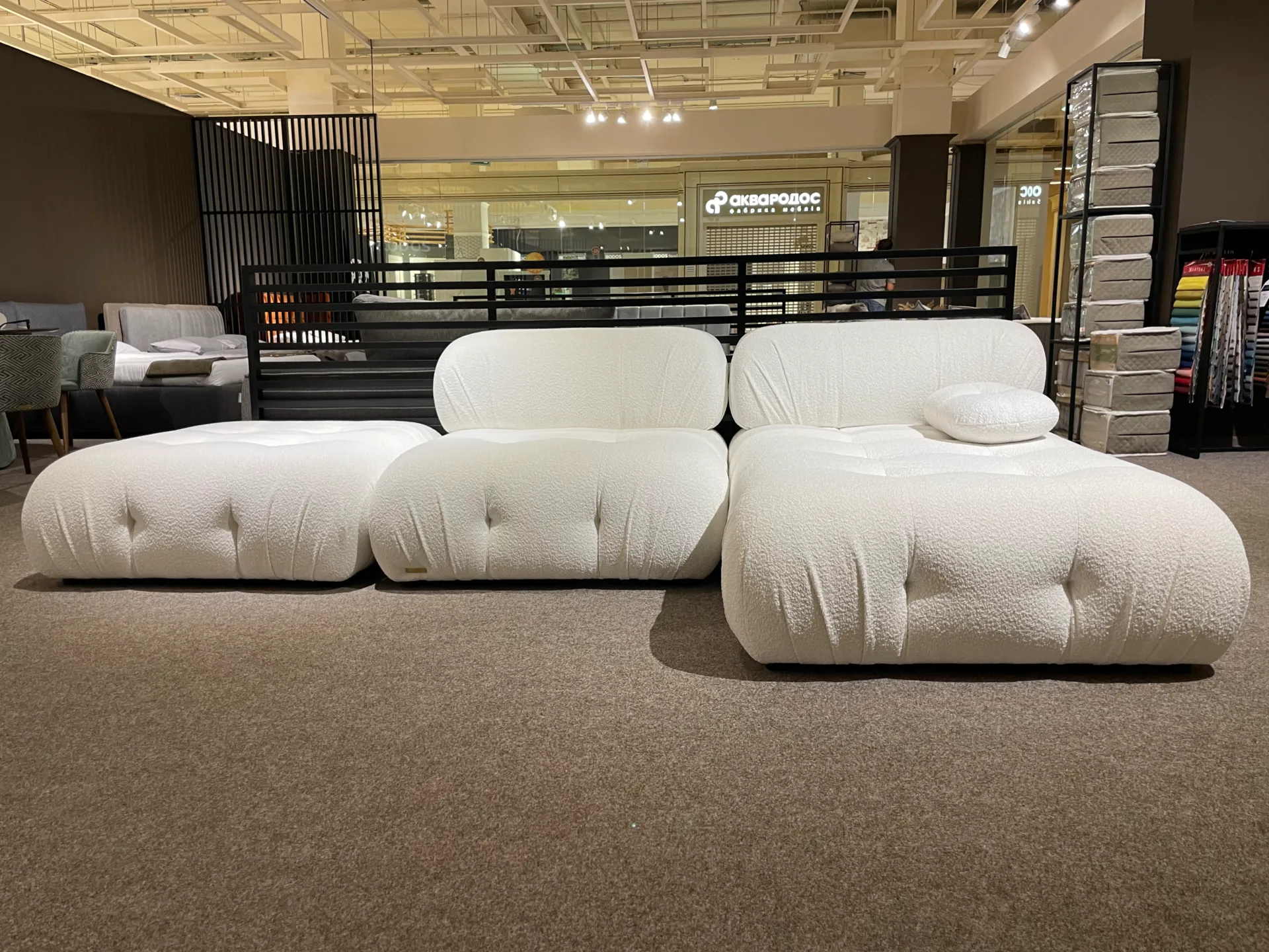На 150 кв.м.площі представлені виставкові моделі диванів «Тасос», «Сідней», «Оттава», «Даллас», «Кіото», «Дортмунд», «Сіетл», «Нью-йорк», «Асті» та ліжок «Капрі», «Рона», «Мехіко», «Малі» з анатомічними матрацами «Massimo Lite», «Сorrado», «Martino», «Renato», «Mateo», а також журнальні столики «Ріо», стіл «Дуо», стільці «Сантіно» та «Верді».