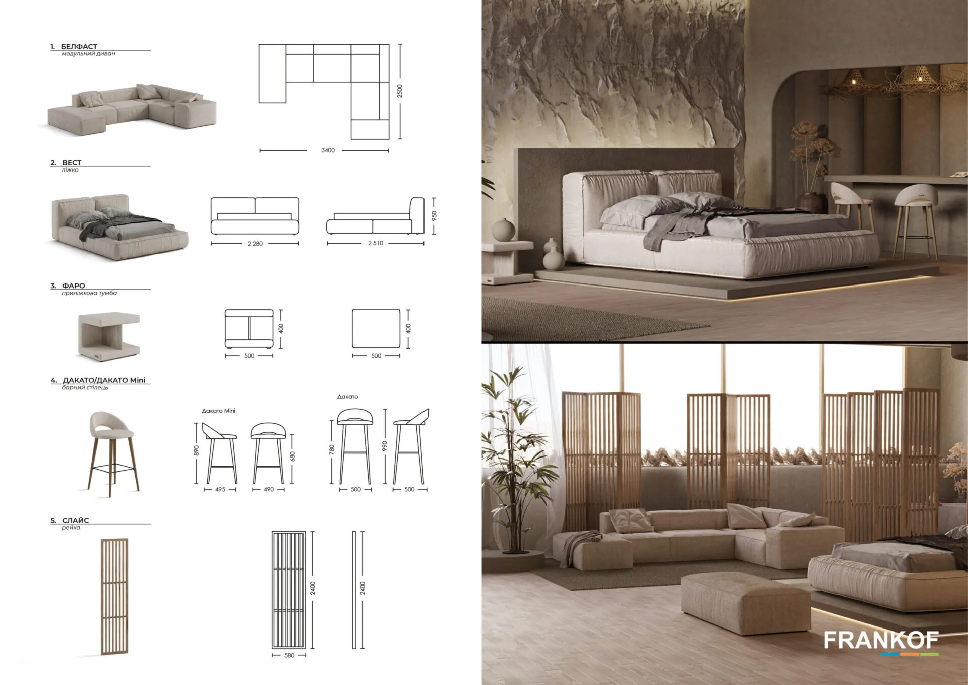 Готові ексклюзивні інтер’єри представлені у трендових варіантах, елементи яких Ви зможете знайти в асортименті фабрики м’яких меблів FRANKOF.