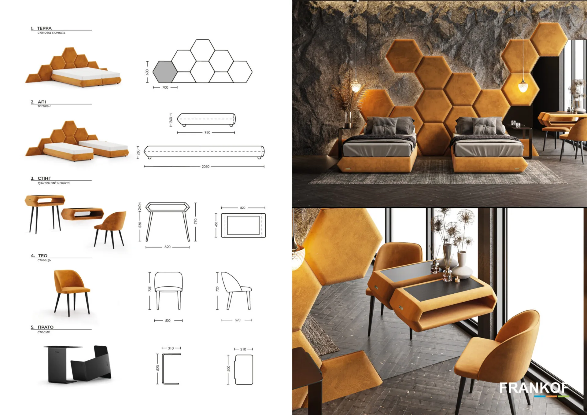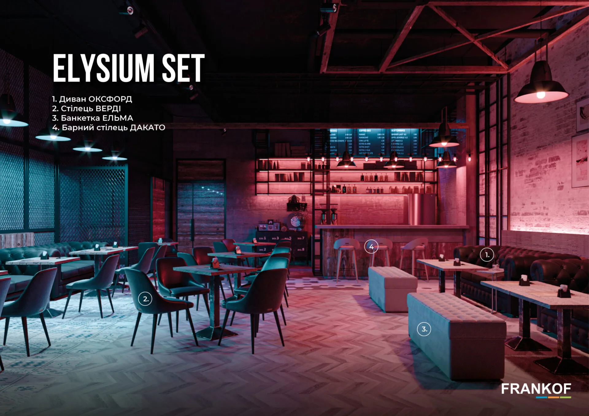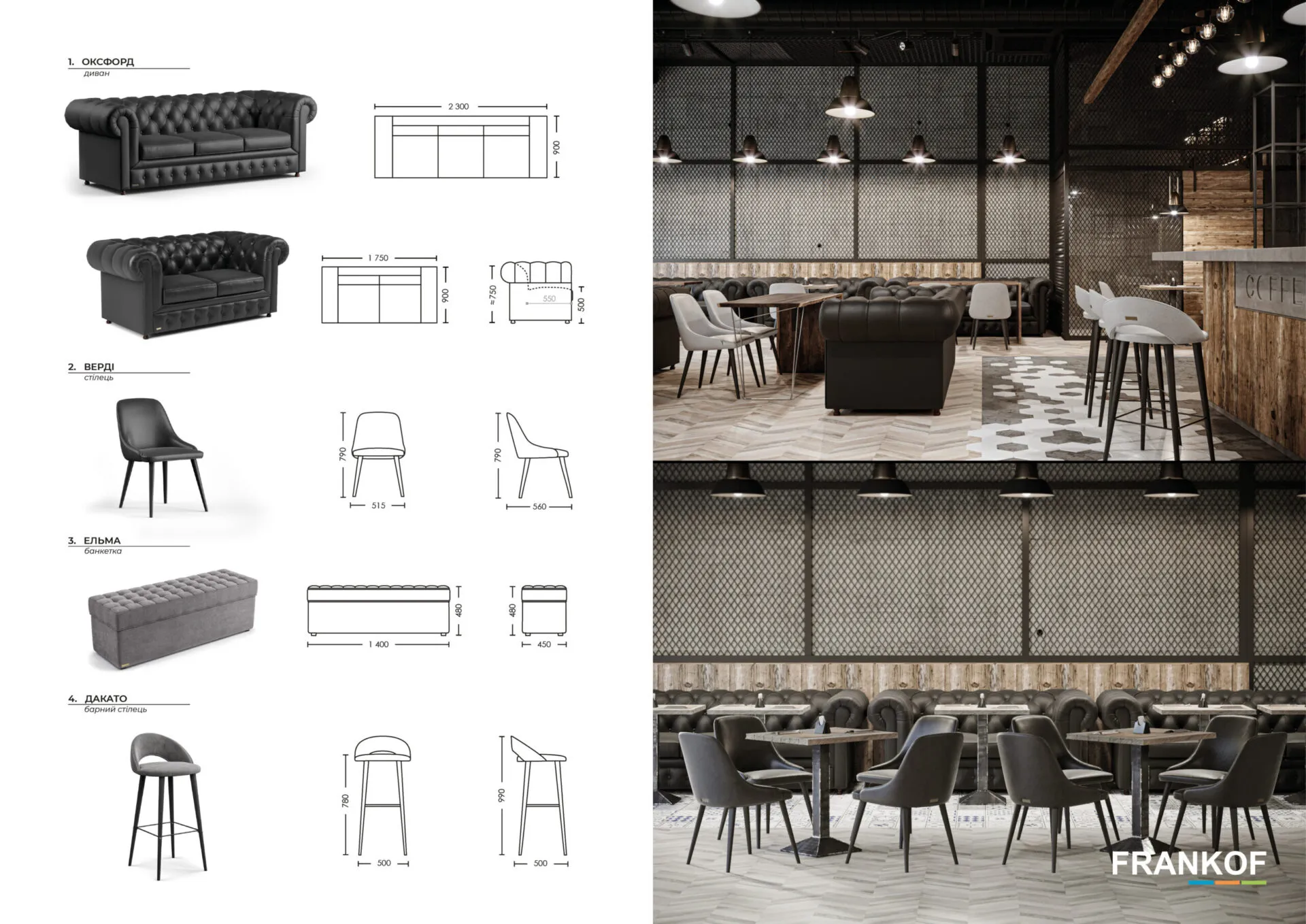 Всі види меблів мають свою стилістику та колірну гаму, тож ми розробили ідеальне рішення їхнього поєднання. Оригінальний та привабливий дизайн знайде своє відображення як у комерційних приміщеннях готелів, кафе та ресторанів, так і підкреслить стиль у домашньому просторі.