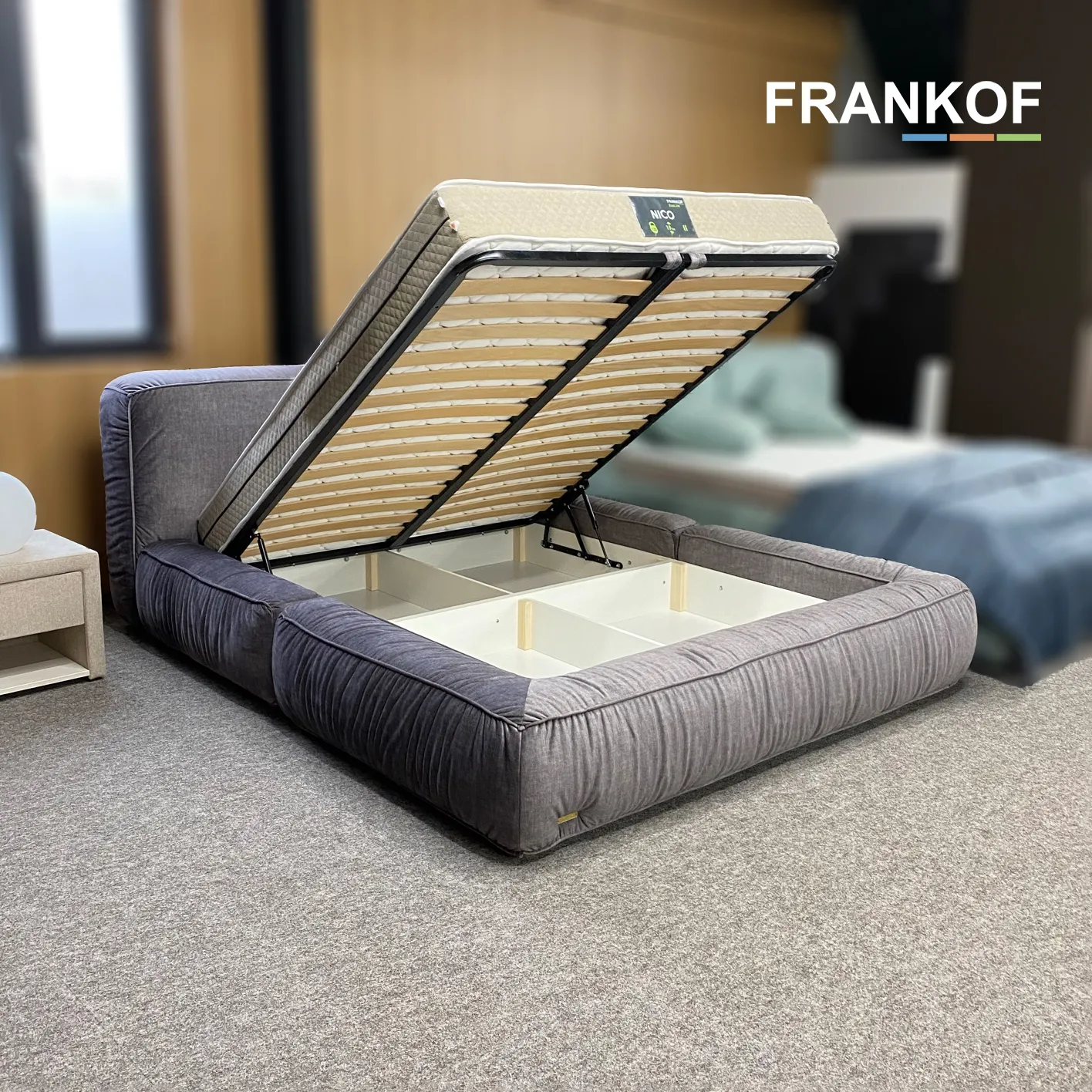 Якість виробів фабрики м’яких меблів FRANKOF перевіряється державною санітарно-епідеміологічною експертизою, висновок якої підтверджує їх надійність та надає право на виробництво даної продукції. В асортименті FRANKOF наявні: ліжка, дивани, крісла, дитячі меблі, столи та стільці, банкетки та приліжкові тумби, аксесуари для сну та стінові панелі.