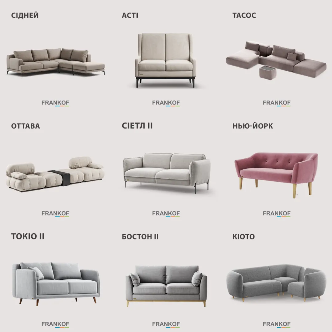 *Приклади декількох нерозкладних моделей диванів FRANKOF