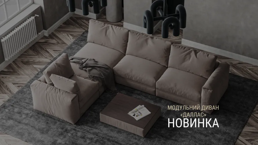 Новинка, модульний диван «Даллас», виділяється серед інших м’яких меблів. Він, як хмара, «тане» під навантаженням і обгортає тіло приємним комфортом. Диван неймовірно зручний і повітряний, а глибока низька посадка подарує незабутні відчуття! Вас підкорить легкість і м’якість подушок сидіння і спинки.
