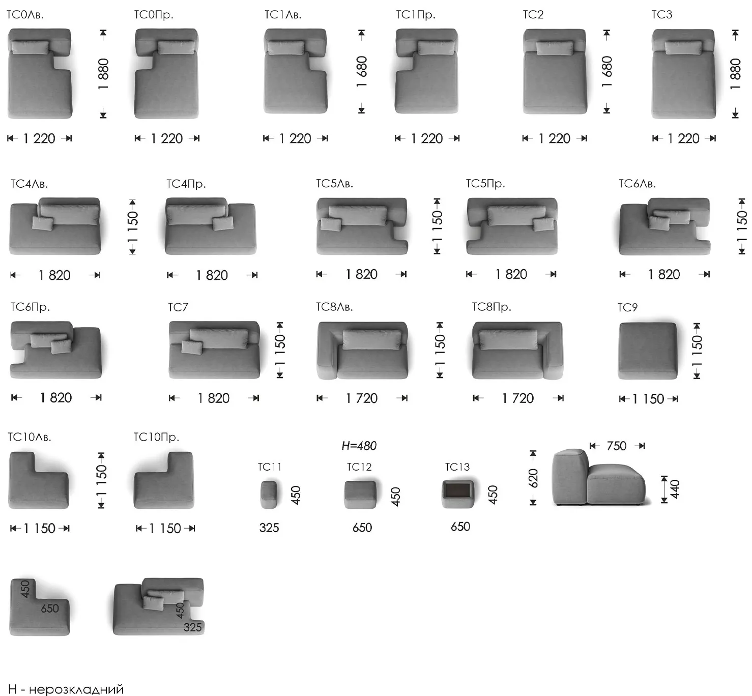 Кількість модулів надає спектр можливостей: ваша креативність зможе утворити незвичні комбінування, надавши унікального зовнішнього вигляду новій покупці. Різноманітність форм дозволяє скласти як компактний варіант, так і конфігурацію без обмеження в розмірах. Компонуйте частини та підлаштовувати під будь-які габарити на свій смак: острівна композиція, кутовий виріб, прямий диван, без боковин чи незвичної форми — на все ваша фантазія.
