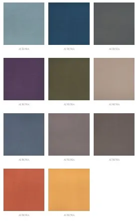 Тканина на виробі — оксамитовий меблевий замш із колекції «Aurora» (виробник «Textoria») кольору «Olivia», який легко впізнати за його брудно-зеленим відтінком. М’яка основа, благородний блиск, витривалість (100 000 циклів Мартиндейла) та високі експлуатаційні показники досягаються завдяки новітній технології виготовлення «burnout», тобто випалювання ворсу. Текстиль має таку властивість, як антикіготь, що дозволить власникам домашніх тварин уникнути слідів від випадкових зачепів кігтями.