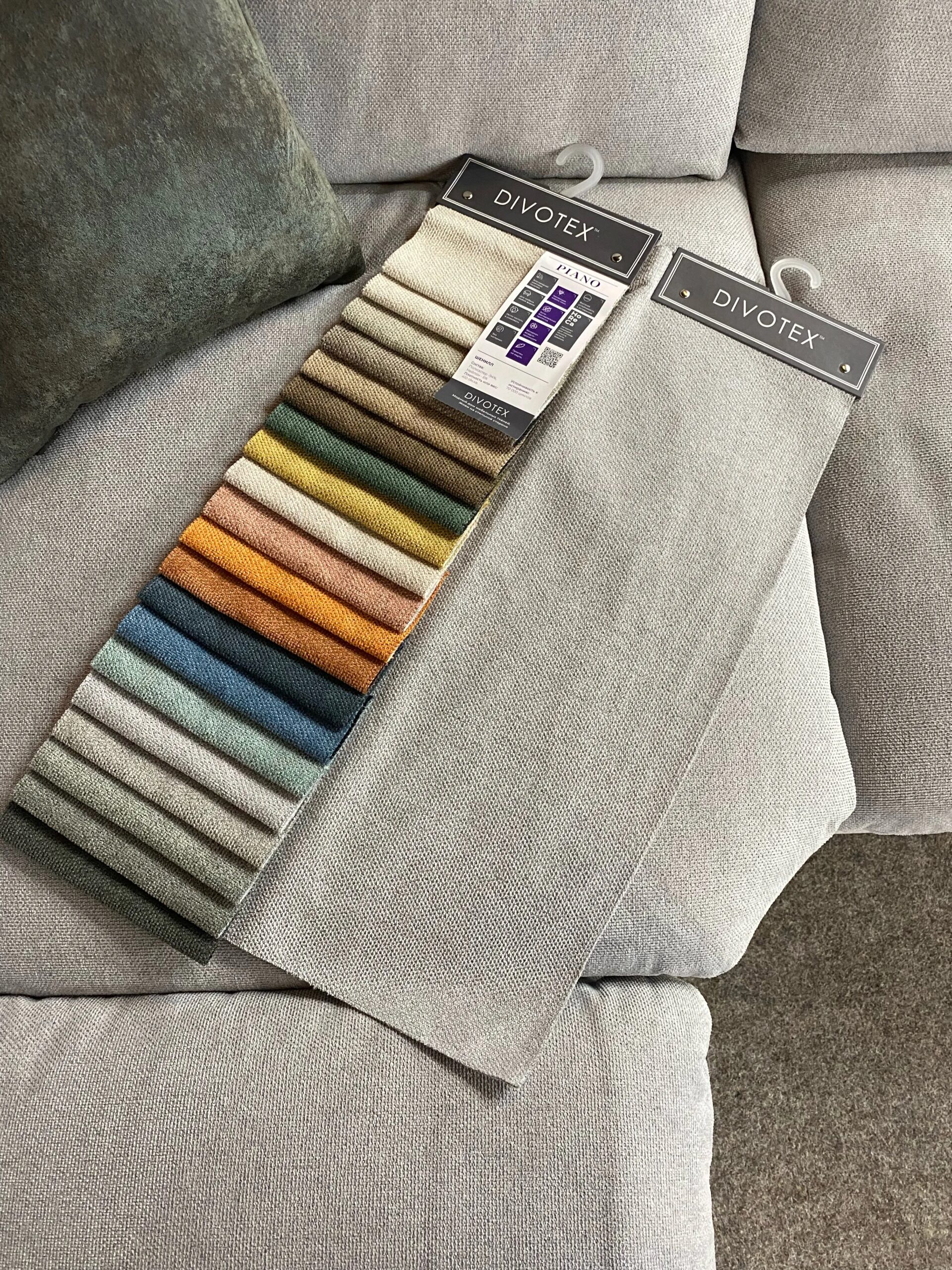 Завдяки стильній формі він не виглядає масивним. У Вас є відмінна можливість визначитися з текстурою і ідеальним кольором оббивки. На фото – щільна шенілова колекція «Piano» від турецького виробника Divotex. Тканина порадує Вас чудовим дизайном і високою якістю: м’яка і приємна на дотик, показник зносостійкості – 70 000 циклів ( за тестом Мартиндейла), рекомендована для використання у закладах HoReCa.