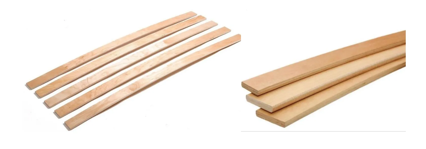 Ламели – это упругие деревянные рейки, которые представляют собой гнуто-клееную планку из шпона, которой с помощью прессования придают изогнутую форму. Мебельные ламели изготавливают из тонких пластов тщательно просушенной древесины, которые пропитывают клеем, нагревают и слегка сгибают; после охлаждения рейка сохраняет изгиб.