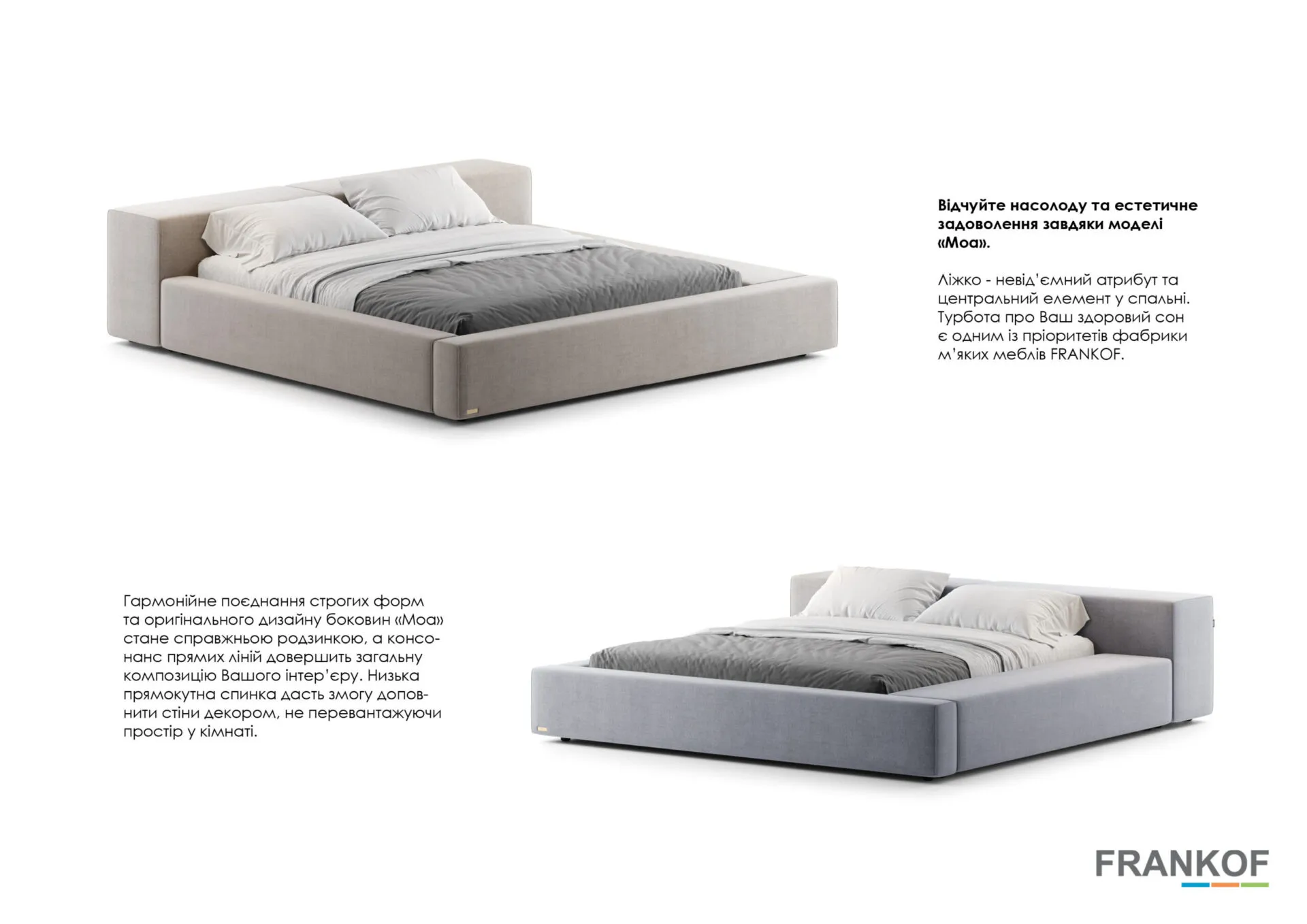 Ліжко є невід’ємним атрибутом та центральним елементом у спальні. Турбота про Ваш здоровий сон є одним із пріоритетів фабрики м’яких меблів FRANKOF.