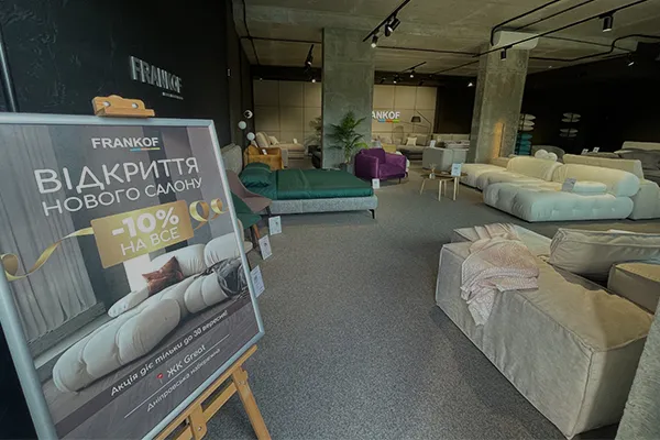 Команда фабрики м‘яких меблів FRANKOF має величезну радість повідомити про відкриття нових фірмових салонів одразу у декількох містах! Запрошуємо Вас відкрити для себе найвищу якість, елегантний дизайн та бездоганний комфорт: