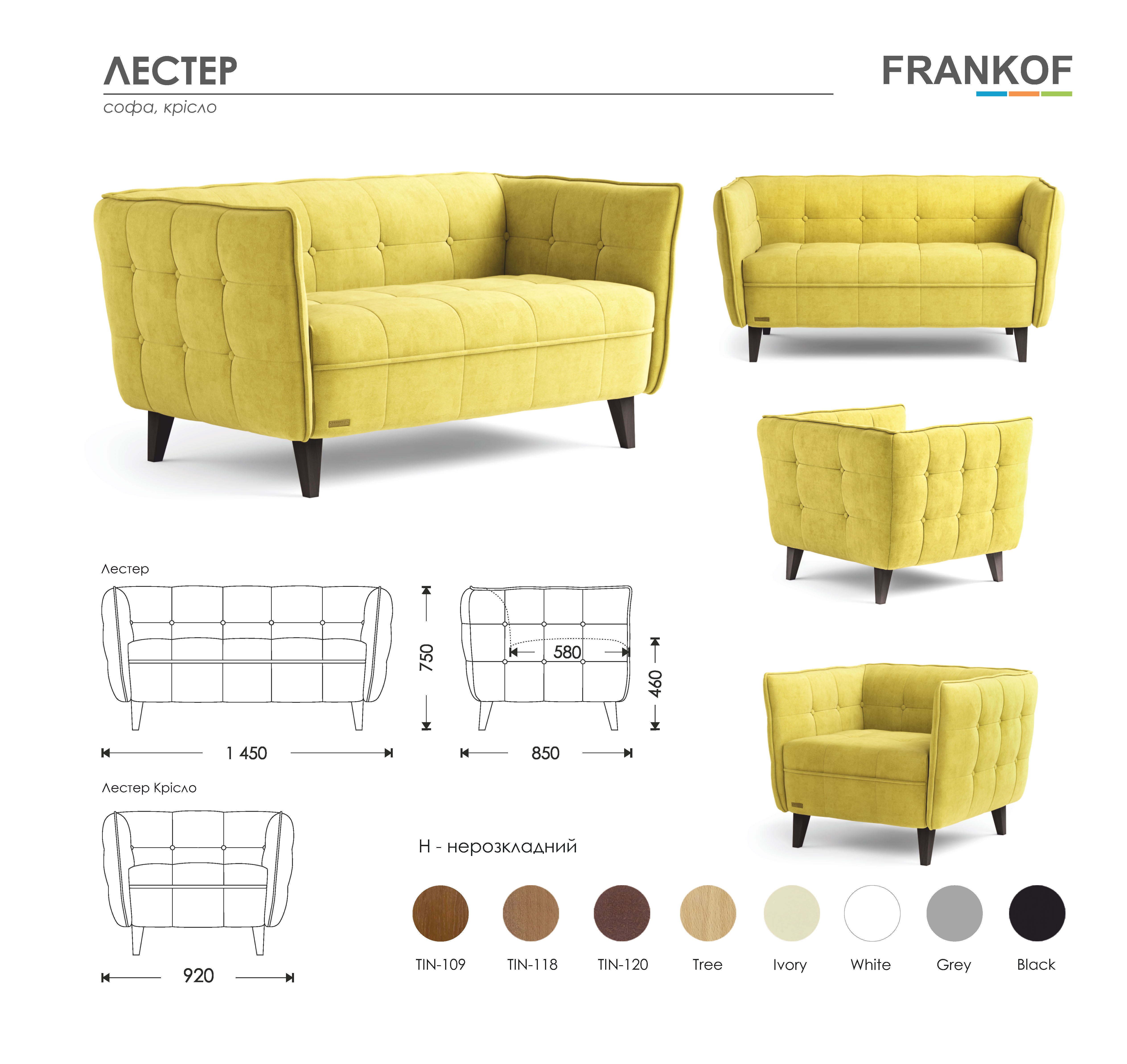 Деревянные ножки (14 см) добавляют шарма и обеспечивают надежность конструкции, а возможность кастомизации ткани позволяет интегрировать «Лестер» в любой интерьер.