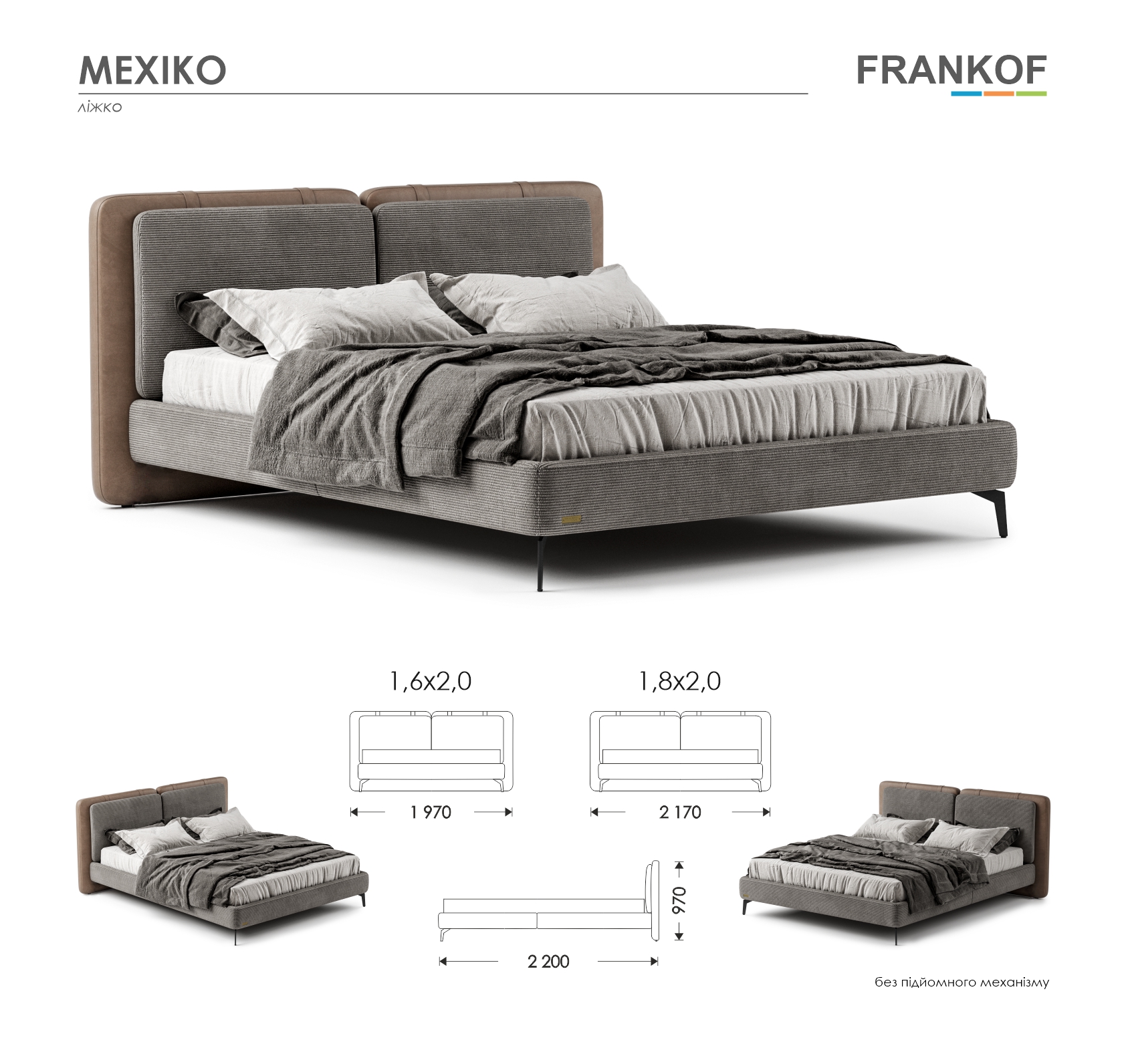 Изголовье стилизовано под две мягкие подушки, придавая модели уютный вид. Высокие металлические ножки высотой 16 см создают легкость дизайна и обеспечивают удобство уборки, включая использование роботов-пылесосов.
