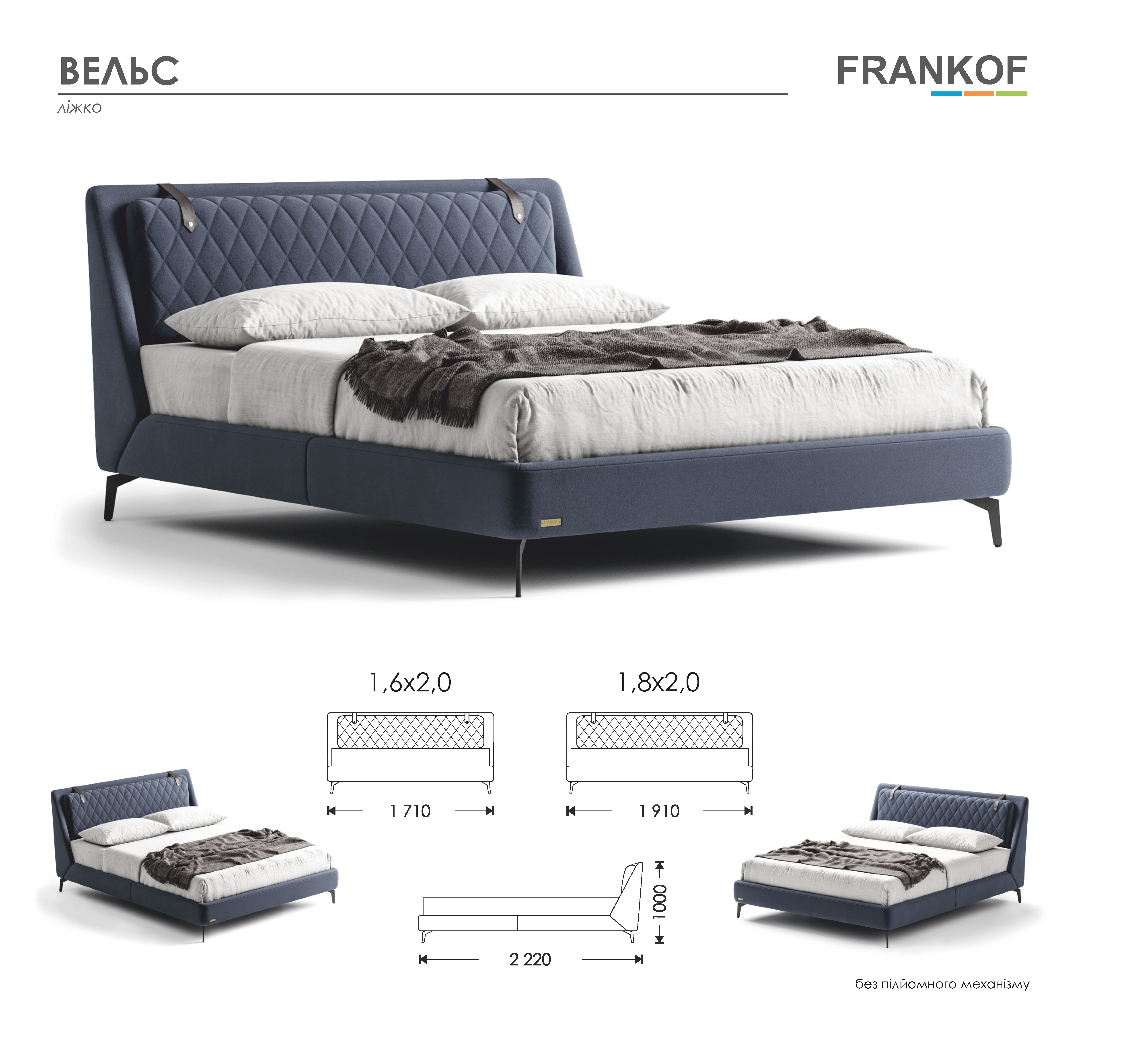 В основе используется деревянный каркас без встроенного короба для белья. Высокие ножки (15 см) добавляют изделию не только прочности, но и «антивандальных» свойств: повышенную устойчивость к значительным нагрузкам, транспортировке, внешнему воздействию, а также позволяют легко проводить регулярные влажные уборки, в том числе с помощью робота-пылесоса.