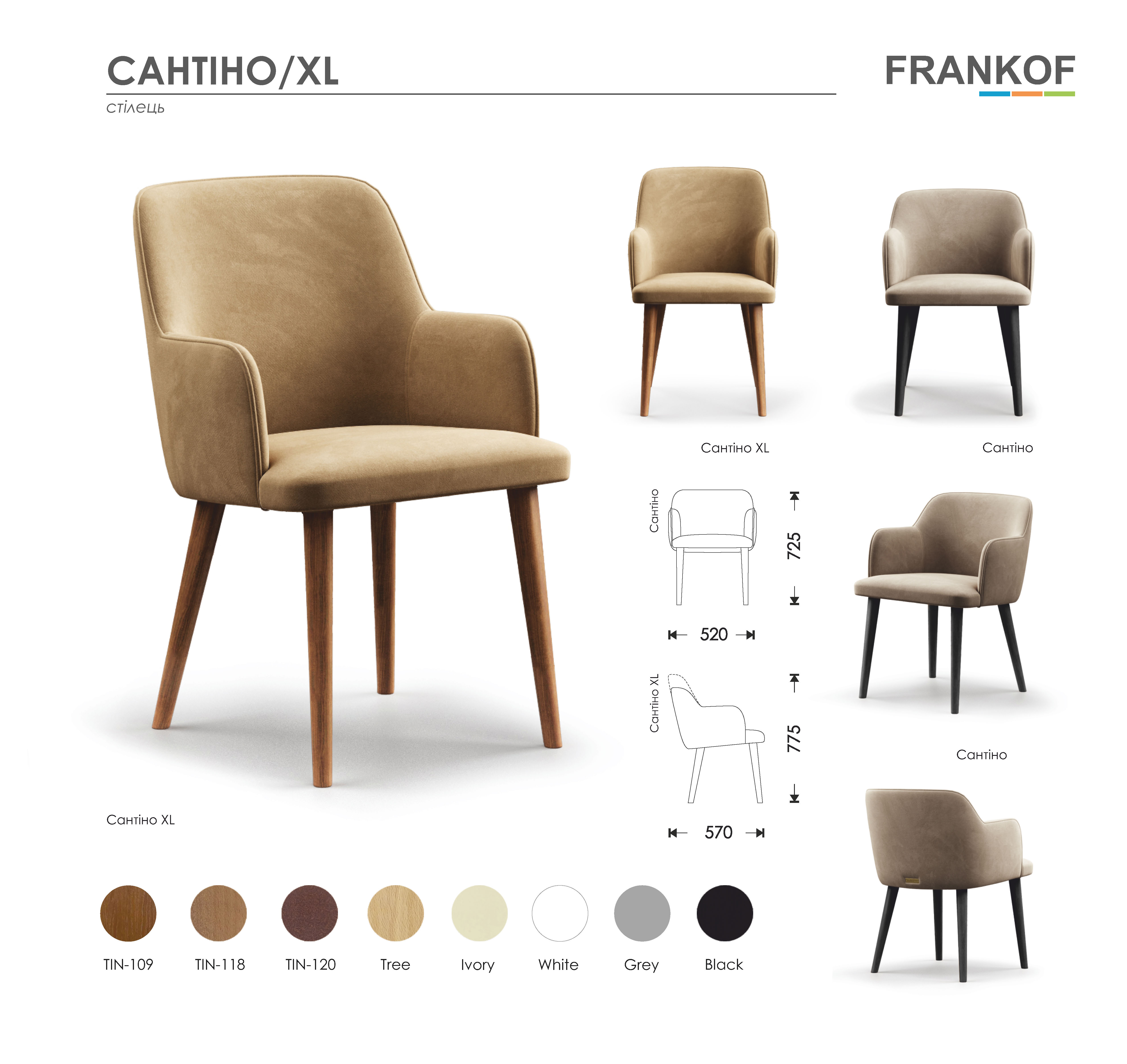 Стулья "Сантино" и "Сантино XL" - это совершенное сочетание классического комфорта и современной элегантности.